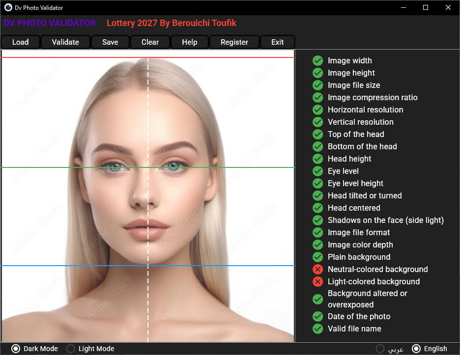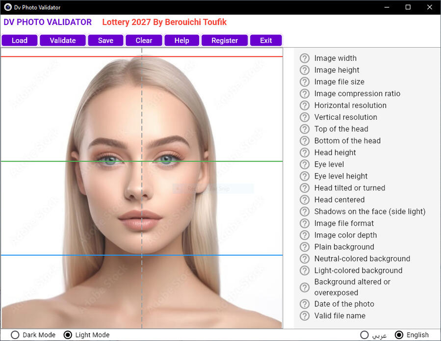 DV Photo Validator is a professional program for checking photos for the US DV Lottery before uploading them to the official application. It is specifically designed to ensure that your photo meets all required requirements, increasing your chances of successful application acceptance.